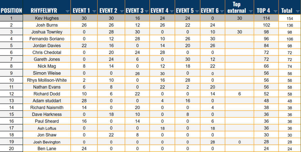 After 6 epic events, and a few external events (those played in west and south Wales), the top four results form each event are taken to give you the final standings for the North Wales National Championships for 40K.